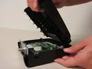Продолжайте тянуть, пока полностью не снимете верхнюю крышку устройства.