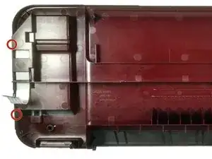 Разместите пальцы на краю красной крышки. Начните тянуть вверх, чтобы освободить верхнюю часть, обходя по периметру принтера. Убедитесь, что крышка не защёлкнётся обратно на место.