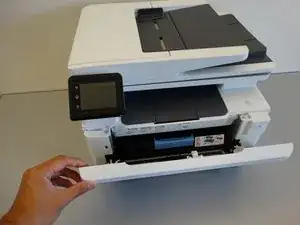 Это руководство по замене кнопки включения на HP Color LaserJet Pro MFP M277dw. Вам понадобятся пластиковые инструменты для открытия и отвертка Phillips #2.