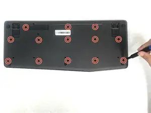 Удалите тринадцать винтов размером 5,3 мм с задней стороны клавиатуры с помощью отвертки PH #0.