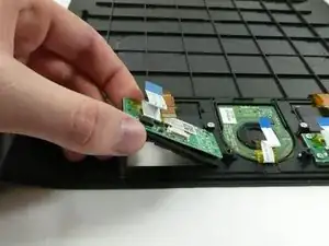 Отодвиньте черный пластиковый зажим от разъема плоского провода и вытяните плоский провод.