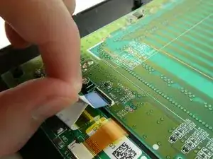 Поднимите черный пластиковый зажим, удерживающий плоский провод на разъеме.