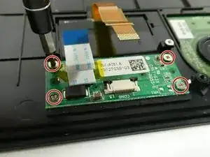 Используйте отвертку Phillips #1, чтобы выкрутить четыре винта длиной 5 мм на плате кнопок Express, которую вы хотите заменить.