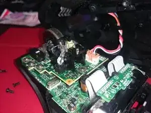 Здесь нужно снять четыре винта. Два винта расположены рядом с местом, где вы нашли пружинки, и ещё два фиксируют конструкцию колеса прокрутки к верхней плате.
