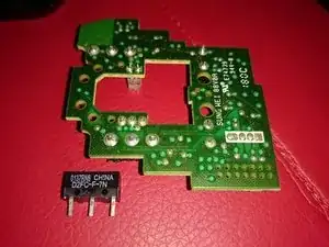 Сняв верхнюю плату, переверните её и выпаяйте переключатель Omron. (Обратите внимание на ориентацию переключателя!)
