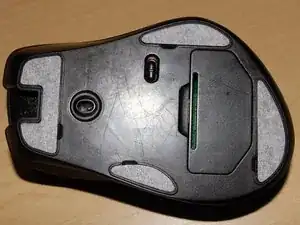 Затем снимите тефлоновые «ножки» мыши, чтобы получить доступ к пяти (5) винтам, скрепляющим верхнюю и нижнюю части корпуса мыши.