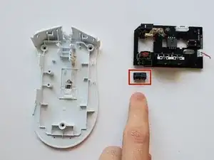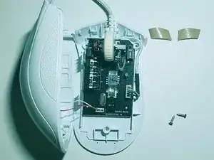 Используйте лопатку или инструмент для вскрытия, чтобы снять верхние тефлоновые накладки с мыши.