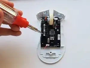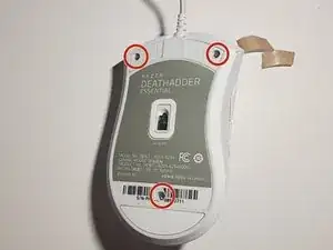 Используйте отвёртку Phillips #1, чтобы открутить три винта длиной 9 мм, которые скрепляют корпус мыши.