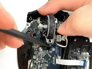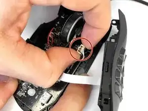 С помощью крестовой отвёртки Phillips #00 отвинтите винт 5 мм, удерживающий колёсико прокрутки.