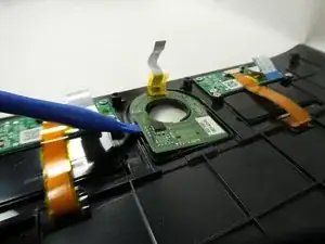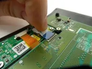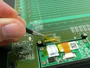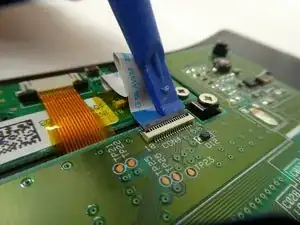 Поднимите черный пластиковый зажим, удерживающий плоский провод к разъему, с помощью либо пинцета, либо инструмента открытия iFixit.