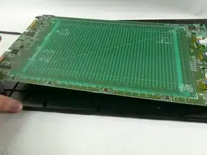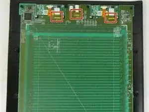 Поднимите пенопластовую подложку экрана, соединяющую материнскую плату/графическую панель с двумя небольшими платами клавиш быстрого доступа, положив ее на материнскую плату.