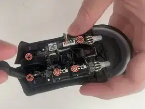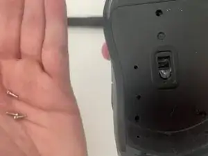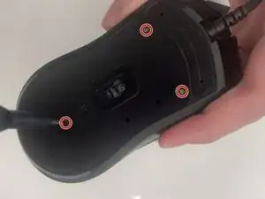 Используйте крестовую отвертку Phillips #0, чтобы выкрутить три винта 2 мм с нижней части мыши.