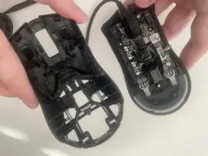 Используйте пластиковую лопатку, чтобы аккуратно приподнять заднюю панель от корпуса мыши.