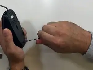 Удалите один винт внизу мыши отверткой Phillips №000.