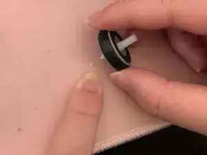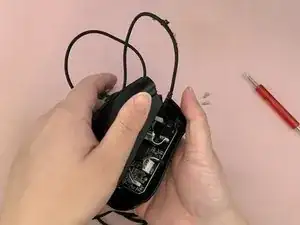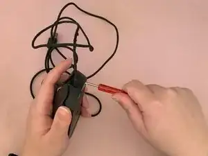 Проткните отверстие в наклейке продукта на дне мыши с помощью отвертки.