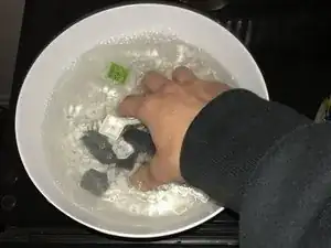 Погрузите все колпачки в миску с тёплой водой комнатной температуры.
