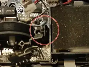 Используя крестовую отвёртку Phillips #00, выньте один винт, расположенный рядом с колёсиком.