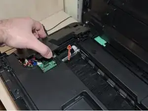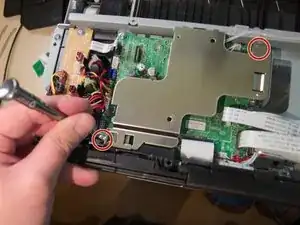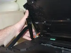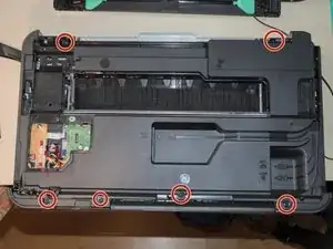 Снимите винты, соединяющие черную пластиковую крышку с принтером (см. изображение)