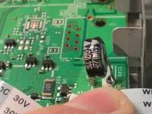 Будьте осторожны, оставив достаточно провода, чтобы можно было припаять новый конденсатор на них.