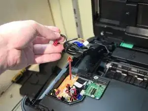 Снимите красные и белые разъемы с их гнезд, как показано на третьем изображении.