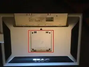 Под креплением подставки Вы обнаружите 4 больших чёрных винта. Возьмите большую крестовую отвертку и выкрутите их. Теперь Вы можете снять заднюю крышку.