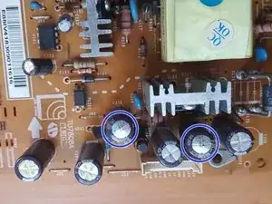 Определите неисправные конденсаторы, снимите их и припаивайте новые.