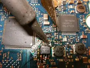 Нанесите немного флюса на контакты припоя и установите старую микросхему BIOS на контакты новой платы контроллера. Убедитесь в правильном расположении микросхемы.
