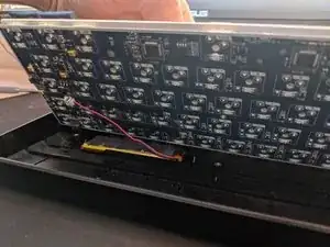 Не поднимайте печатную плату полностью, так как батарея всё ещё подключена.
