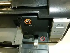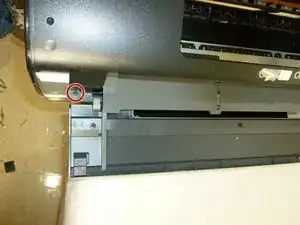 Удалите два винта 10 мм с передней части принтера, используя крестообразную отвёртку PH2.