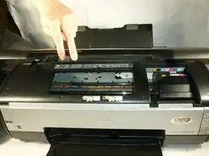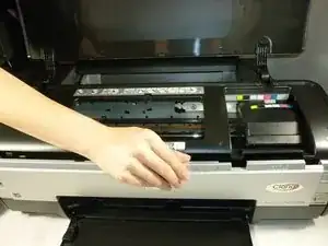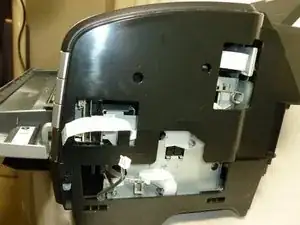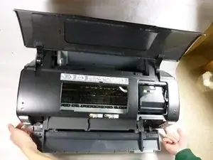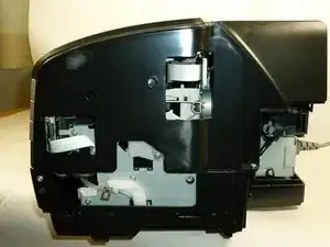 Чтобы получить доступ к внутренним деталям принтера, необходимо снять элементы корпуса.