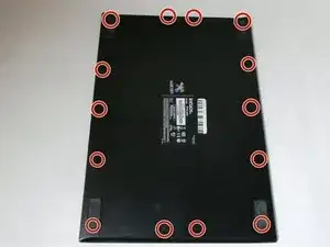 Переверните устройство задней стороной вверх и выкрутите все четырнадцать винтов длиной 7,1 мм при помощи отвёртки с крестообразным шлицем №1.