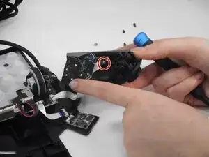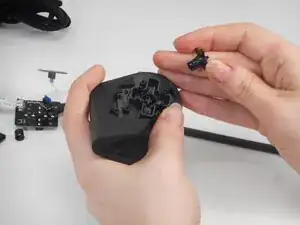 Удалите два винта длиной 6,4 мм, которые фиксируют плату крестовины внутри корпуса, используя отвертку Phillips №0.