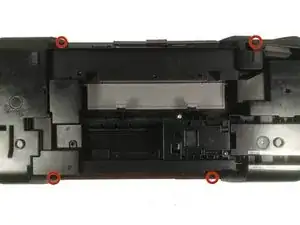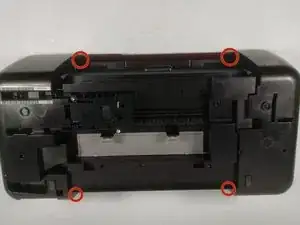 Переверните принтер вверх ногами. Найдите четыре винта, удерживающих крышку на месте. Они находятся по краям крышки.