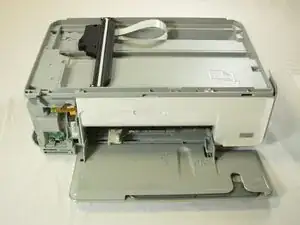 Поднимите каретку сканера вертикально, осторожно, чтобы не сорвать кабели, соединяющие её с принтером.