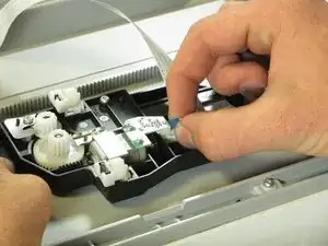 Снимите каретку сканера с поддона сканера и переверните её вверх дном.