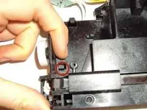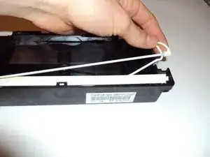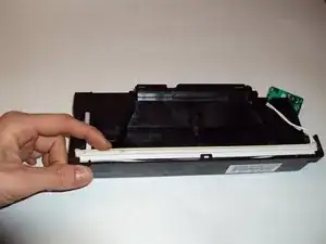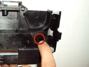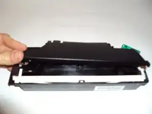 Снимите чёрную переднюю панель с головки сканера. Нажмите на две чёрные защёлки, расположенные по противоположным сторонам головки сканера. Одна из них находится в канавке, в которой обычно располагается панель управления.