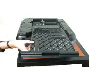 Лоток для бумаги можно снять, перевернув принтер вверх дном и вытянув лоток, как будто вы собираетесь положить в него бумагу.