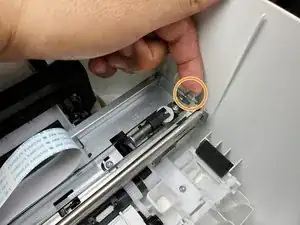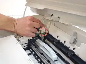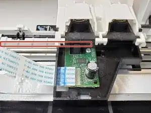 Найдите магнитную полосу, которая проходит прямо через каретку с картриджами с чернилами.
