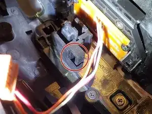 Сборка удерживается за счет защелкивающего действия от винтовых постов на верхней оболочке и отверстий для винтов на сборке. В следующем шаге будет подробно объяснено, как ее извлечь.