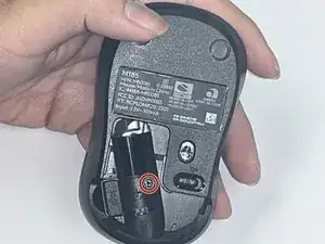 В нашей мыши батарея отсутствует. Тем не менее необходимо вынуть батарею, чтобы получить доступ к винту под ней.