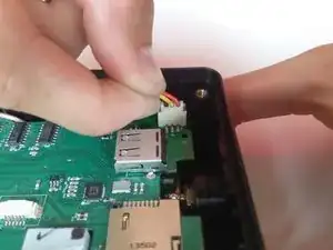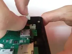 Медленно извлеките материнскую плату из устройства, поднимая ее с конца, соседствующего с соединением шлейфа.