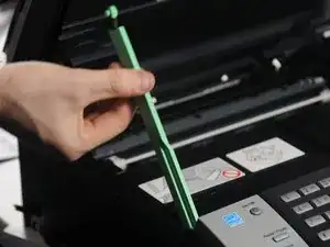 Осторожно поверните верхнюю часть рычага. Верхняя часть должна освободиться от блока сканера.