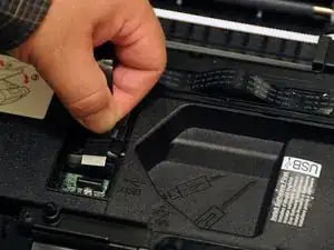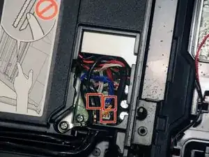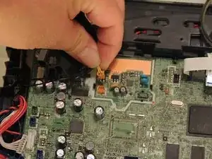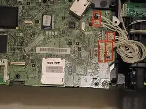 Отсоедините три силовых кабеля, соединяющие сканер с материнской платой слева.