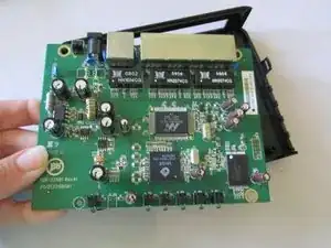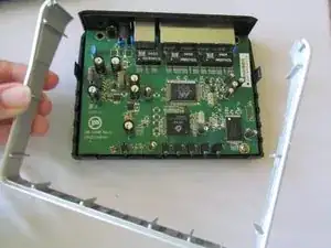 Теперь, когда вы сняли все винты и окружающий серебристый корпус, вытащите логическую плату из нижнего компонента маршрутизатора.