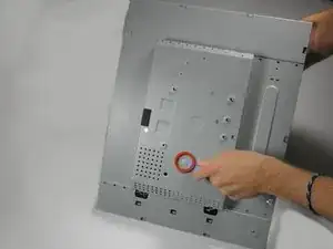 При положении монитора лицом вниз осторожно приподнимите заднюю крышку, чтобы обнажить инверторную плату и материнскую плату.