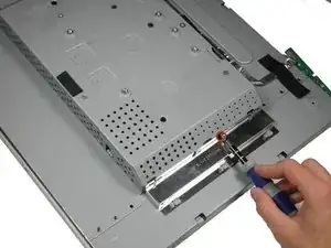 При положении монитора лицом вниз снимите винт Phillips #2 длиной 5.84 мм с металлической пластины.