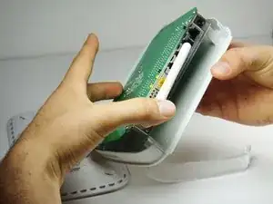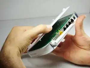 Уберите прозрачный пластиковый корпус, подняв его прямо вверх от маршрутизатора.