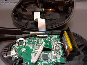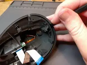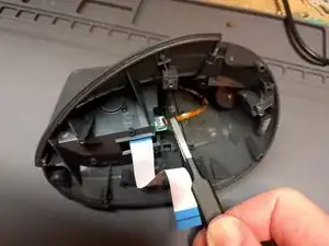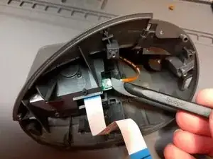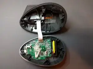 Эти части мыши соединены ленточным кабелем — будьте осторожны на этом этапе, чтобы не повредить его!