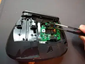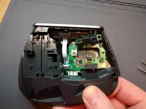 Снимите два винта с крестовой шлицей, фиксирующие плату с микропереключателем левого клика к верхнему шасси.