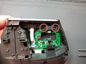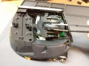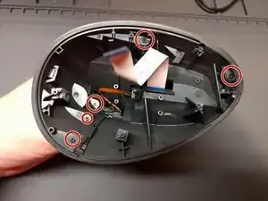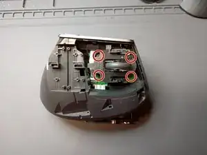 Снимите четыре широких винта с крестовой шлицей, крепящих кнопки мыши к верхнему шасси.